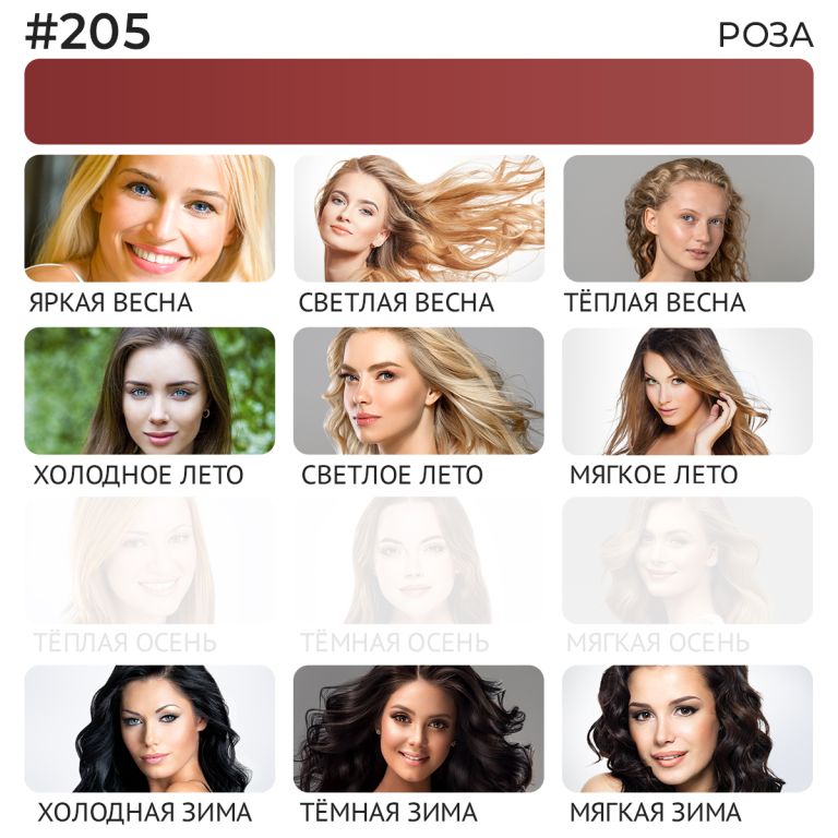 Кому подходит: холодным цветотипам – лето и зима, если натуральный цвет губ не холодный. На холодных губах может дать сливовый оттенок.