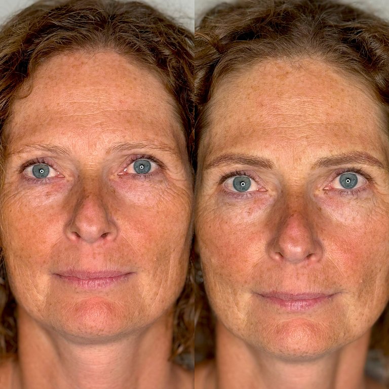 Плотная растушевка и волосковый метод с добавлением 907 или желтого корректора 411.