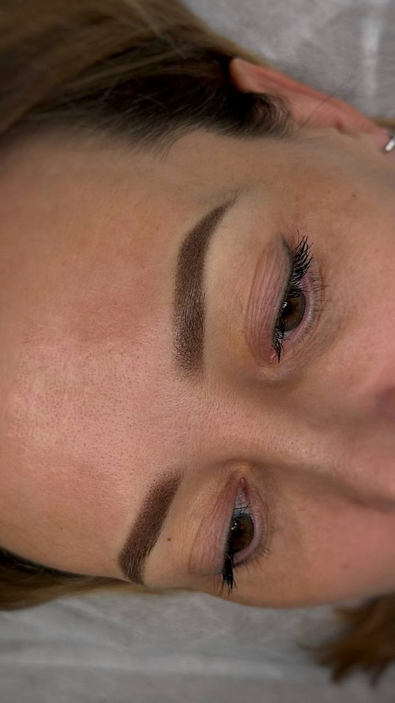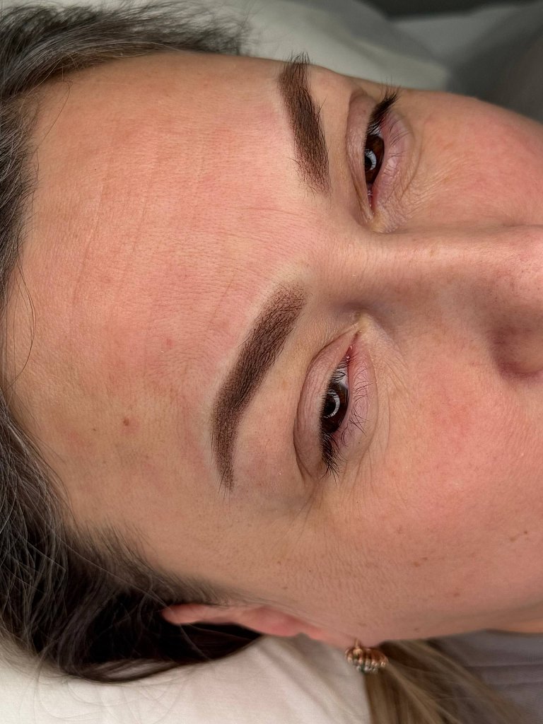 Техники: воздушная растушевка для нормальной и тонкой кожи, для толстой кожи плотная растушевка с осторожностью или добавить теплый корректор. Волоски с теплым корректором.